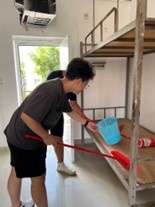 同时,学院为新生拥有良好的住宿环境,9月5日下午团学组织前往新生宿舍,检查宿舍设施是否齐全完善,环境是否干净卫生,大家认真检查各项水电是否能正常使用,宿舍床和桌椅是否有损坏等基础设施问题,对于凌乱的宿舍进行了相应的整理。