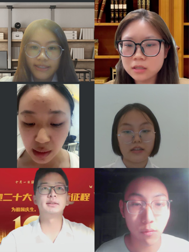 在曹添书记向参加评定同学简单阐述了本次评定会议初衷和国家奖学金评定标准后,九位同学从学业成绩、科技创新、文体竞赛、社会实践等方面依次进行线上陈述展示个人成绩。