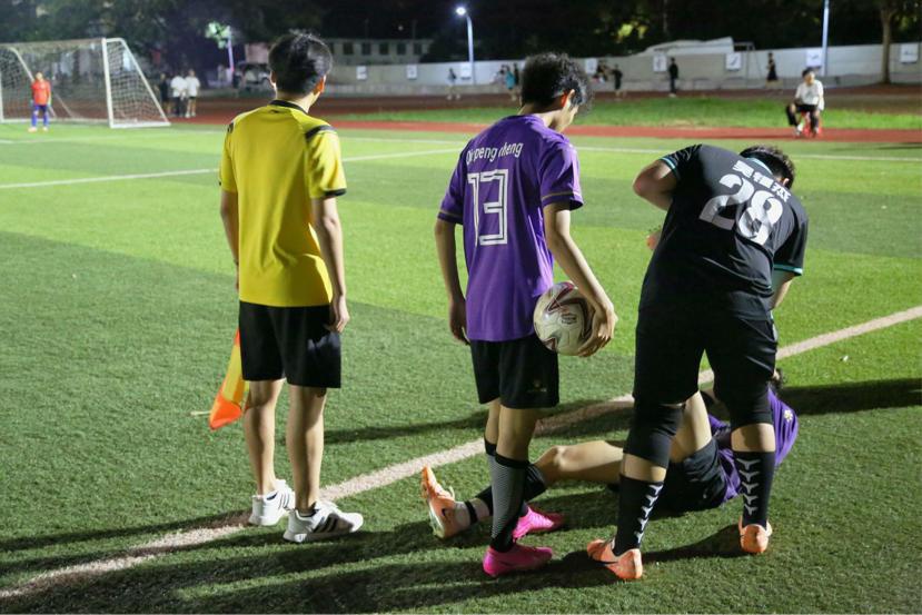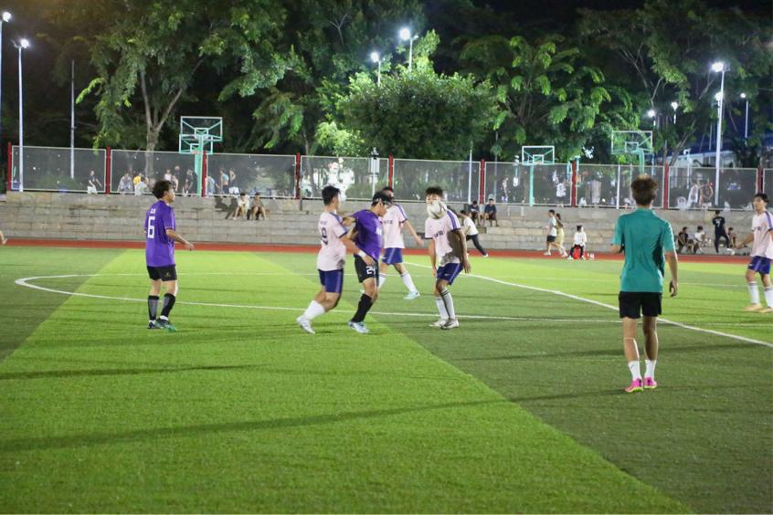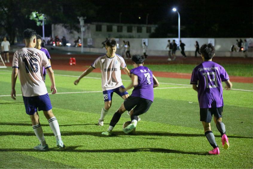 赛前,足球队员们蓄势待发,跃跃欲试。在热身运动中,同学们所表现出的积极与雀跃坦露出他们内心对足球的热爱与执着。18:00,比赛正式开始。队员们在绿茵赛场上跑出英姿飒爽,在天色将晚中踢出意气风发。比赛进入白热化阶段,运动员们连闯数关,直插球门区,急停,转身,飞起一脚,球若流星,陡然回眸牵动一阵欢呼尖叫。