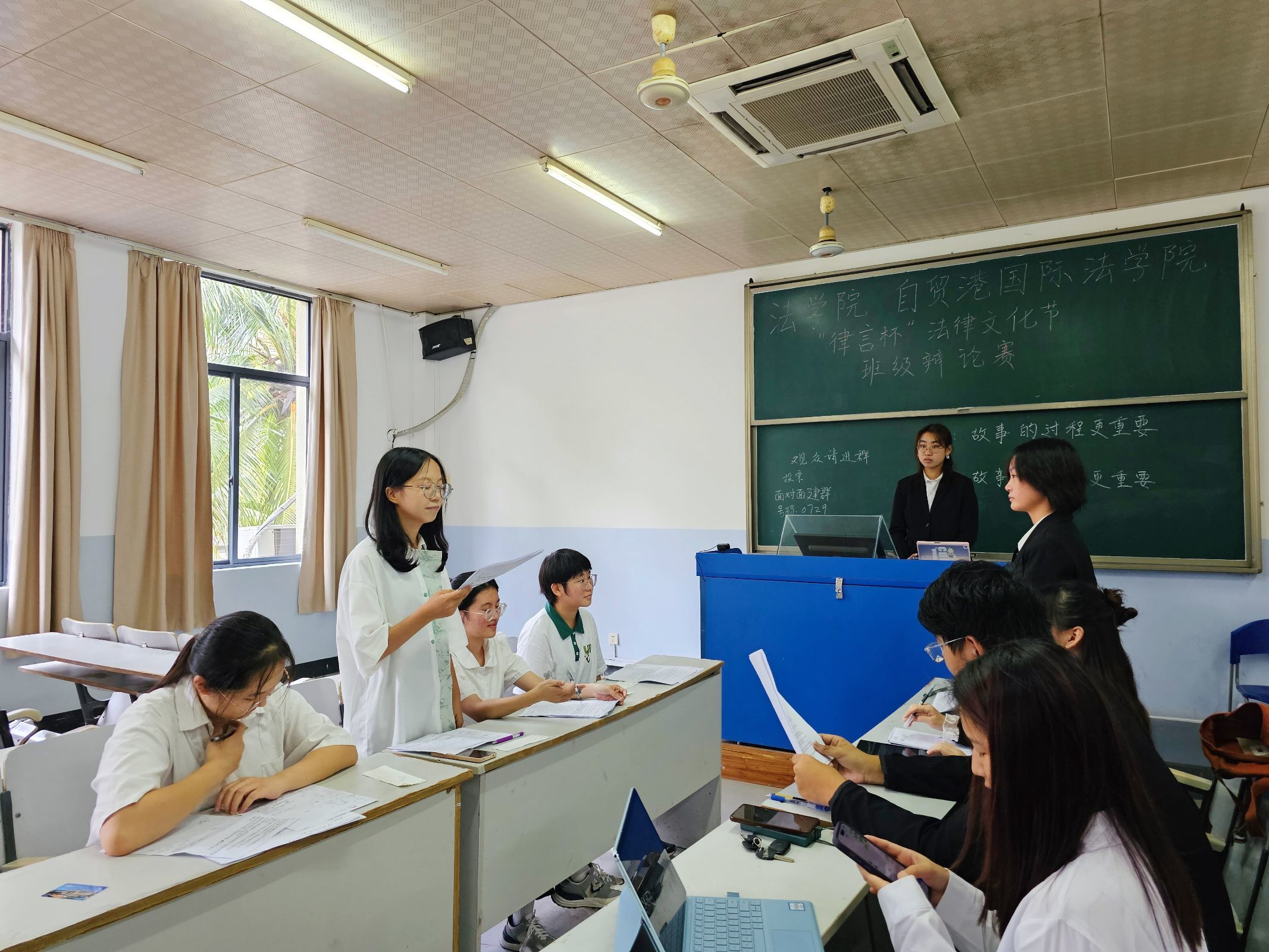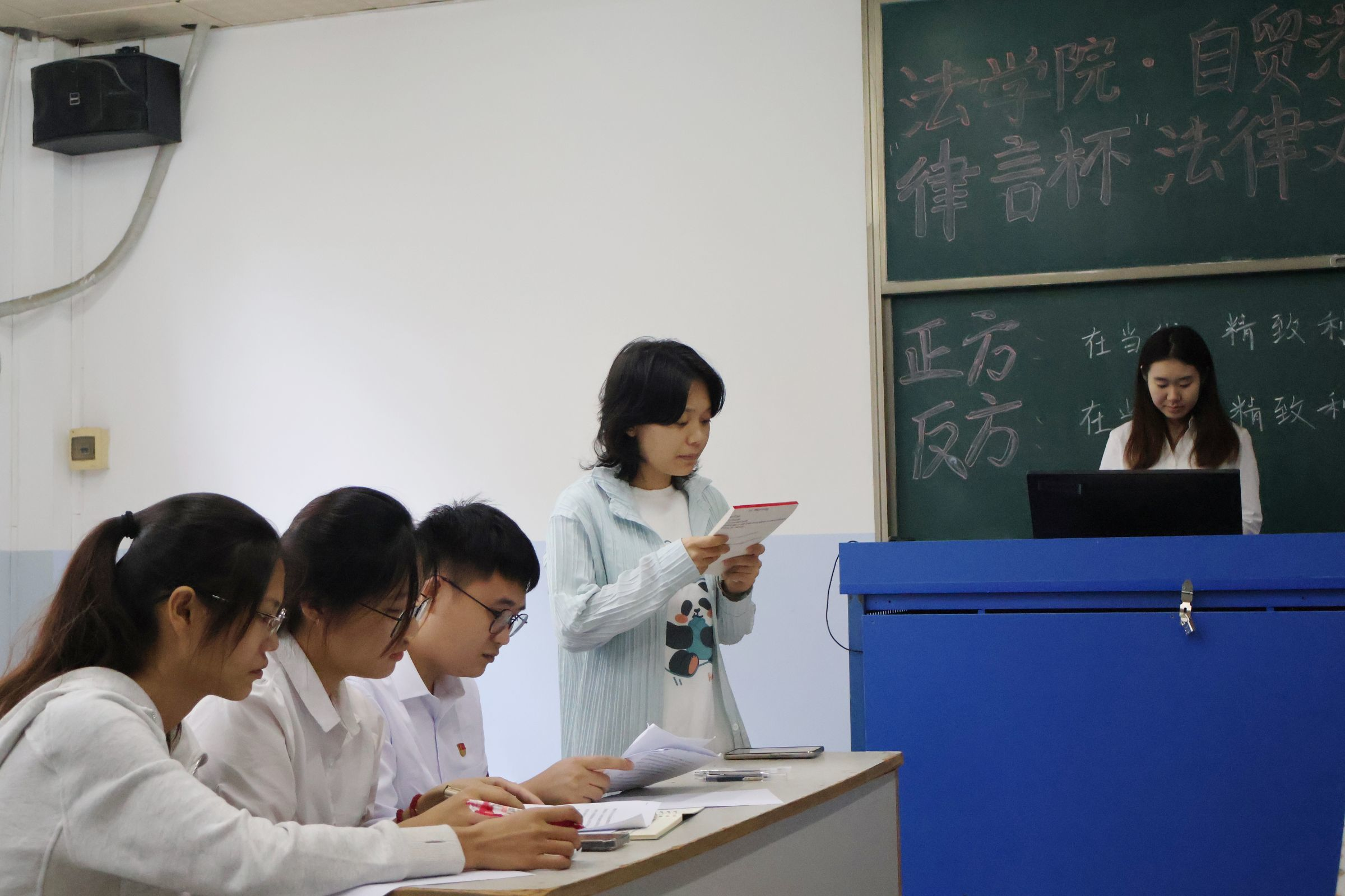思春风发于胸臆,言醺泉流于唇齿。第九届“律言杯”法律文化节辩论赛吸引了各班辩论队进行激烈角逐。11月12日上午于书明楼进行了令人印象深刻的比赛。
