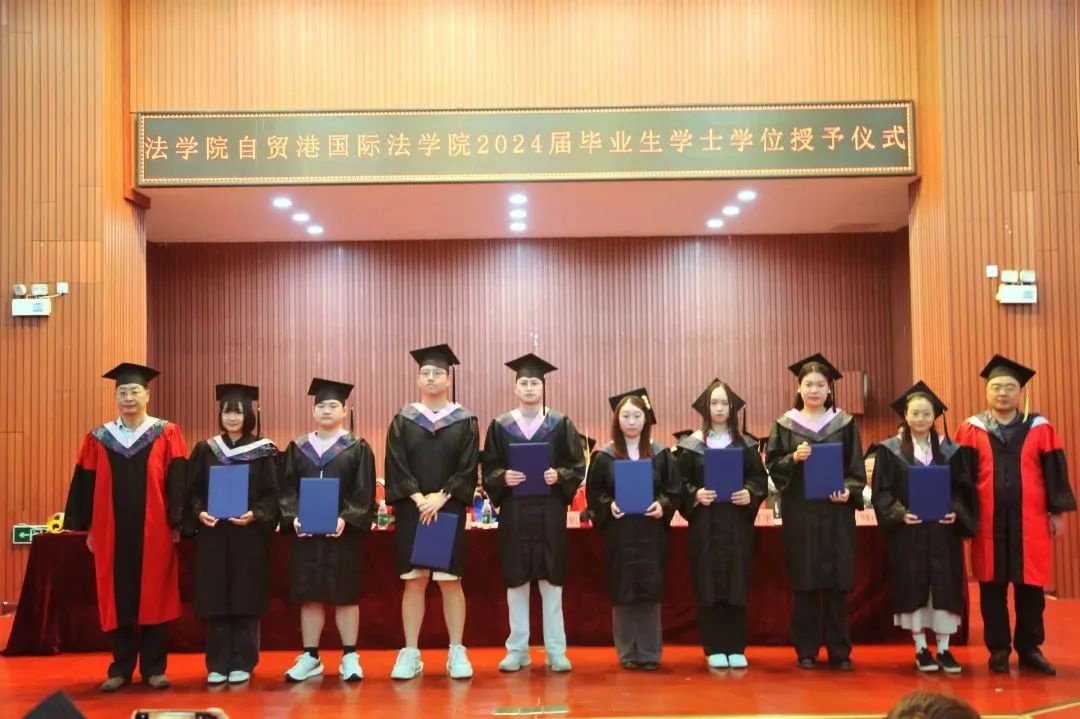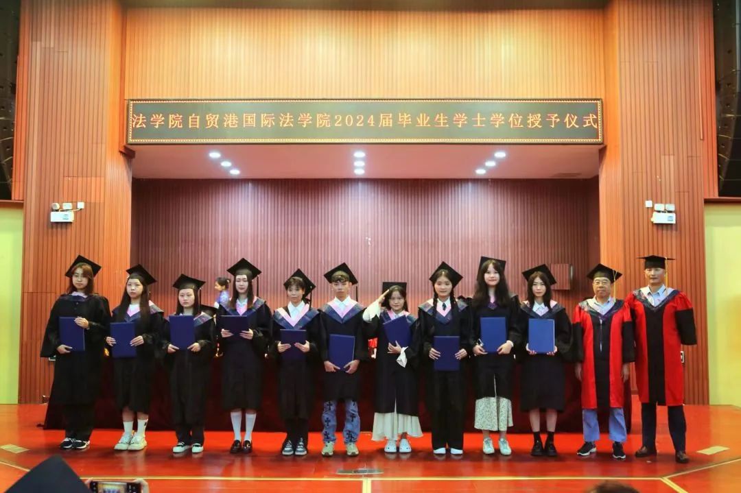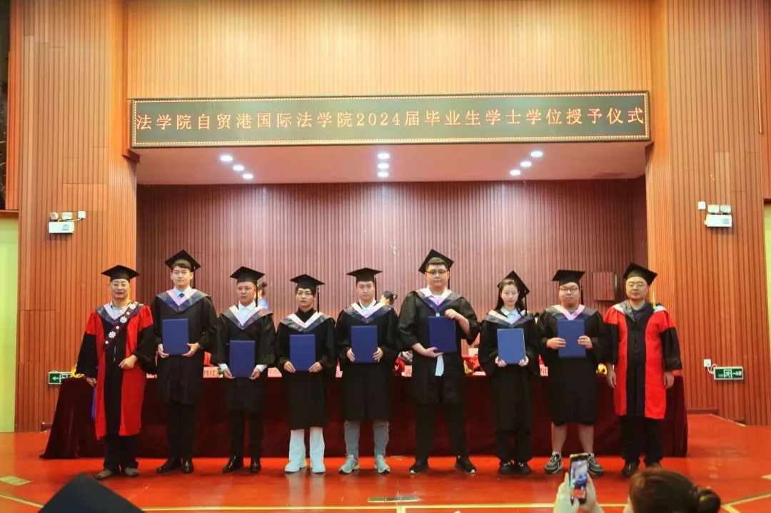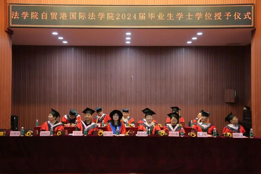 6月2日上午八点半,必赢76net线路官网、自贸港国际必赢76net线路官网于书会堂召开2024届毕业生学士学位授予仪式。仪式开始前,主持人由副院长刘雅斌代表必赢76net线路官网国际必赢76net线路官网发言,他表示必赢76net线路官网各位教职工以渊博的知识、高尚的师德,在培养优质法制人才的岁月中,呕心沥血、成效斐然,由此向每一位辛勤耕耘的领导、老师们表示衷心的感谢;同时向多年来对学校、学院以及专业给予支持的所有家长表示诚挚谢意;对顺利完成学业、将要开启自己新的人生征程的24届法学、自贸港法学专业毕业生表示热烈的祝贺。随着慷慨激昂的开场白响彻在整个会场,必赢76net线路官网2024届必赢76net线路官网毕业生学士学位授予仪式正式开始。
