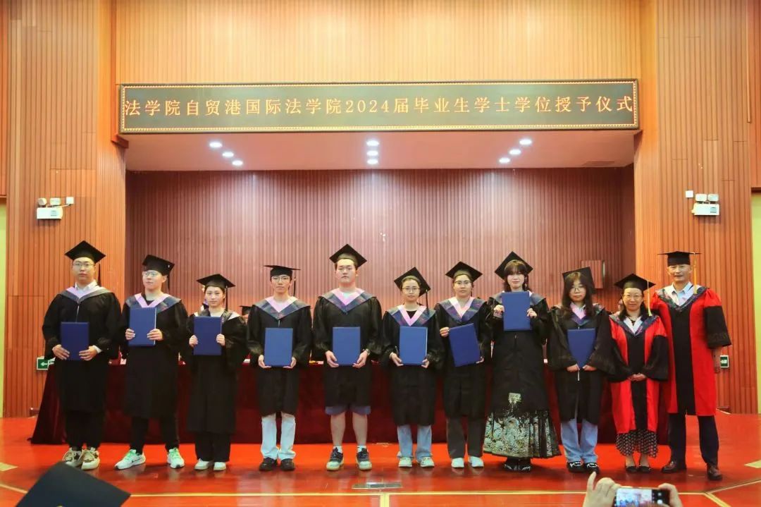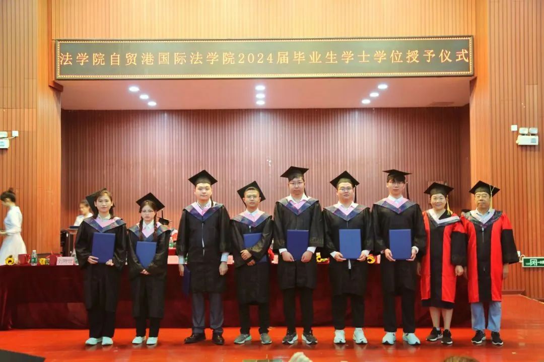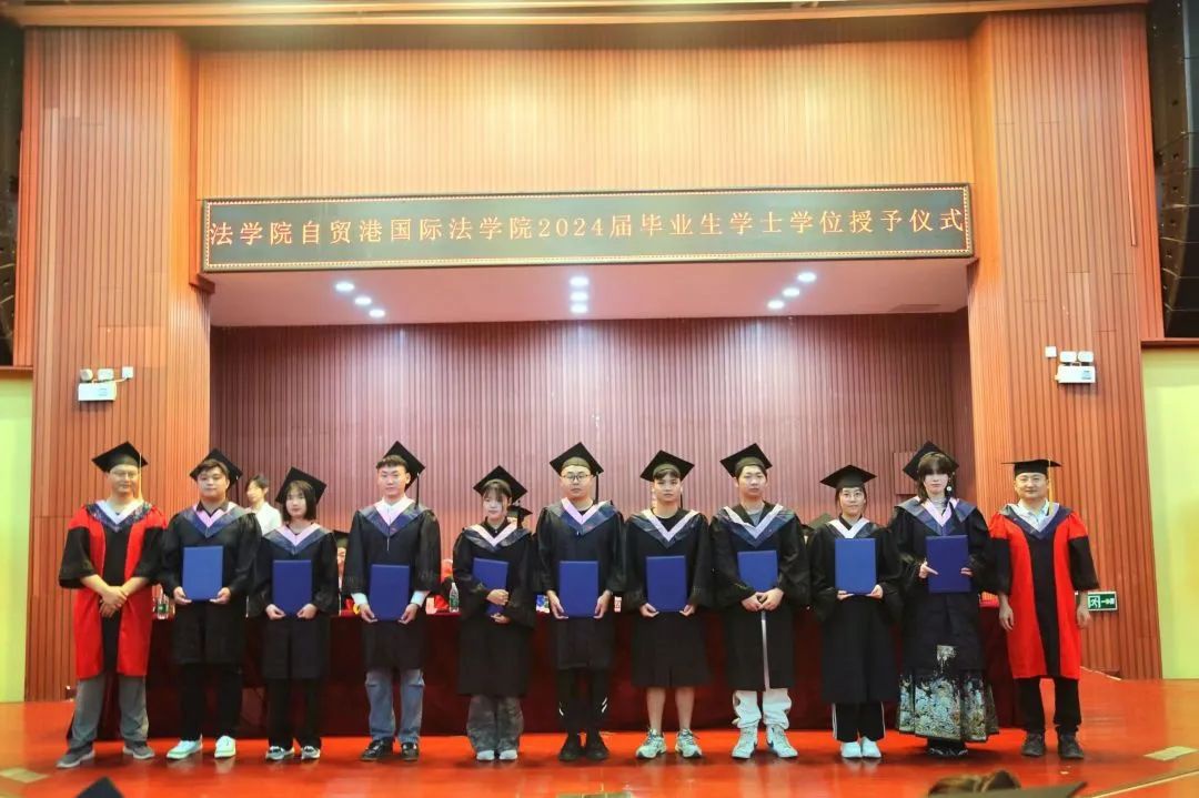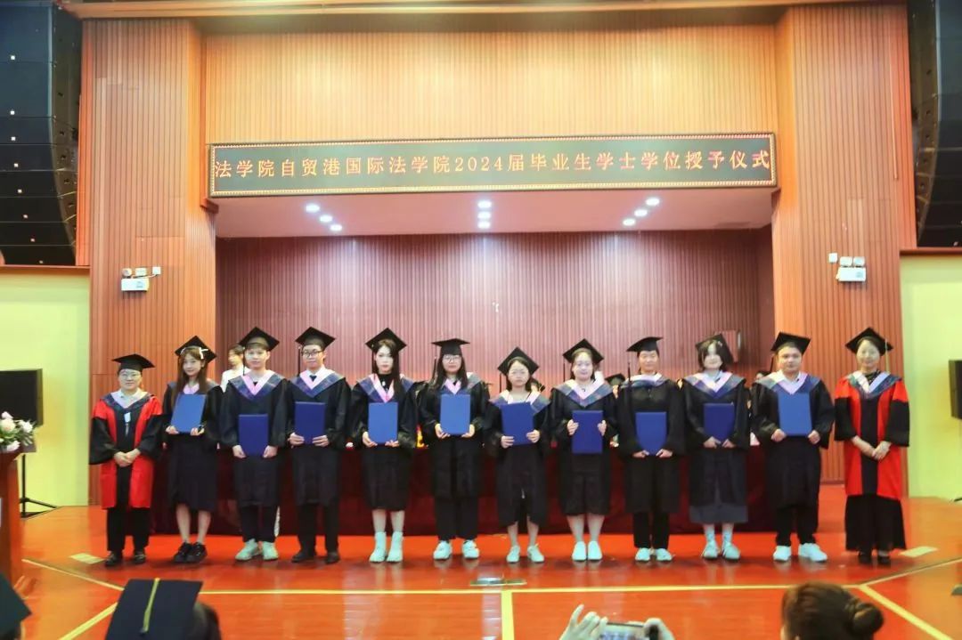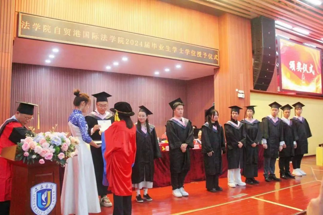 6月2日上午八点半,必赢76net线路官网、自贸港国际必赢76net线路官网于书会堂召开2024届毕业生学士学位授予仪式。仪式开始前,主持人由副院长刘雅斌代表必赢76net线路官网国际必赢76net线路官网发言,他表示必赢76net线路官网各位教职工以渊博的知识、高尚的师德,在培养优质法制人才的岁月中,呕心沥血、成效斐然,由此向每一位辛勤耕耘的领导、老师们表示衷心的感谢;同时向多年来对学校、学院以及专业给予支持的所有家长表示诚挚谢意;对顺利完成学业、将要开启自己新的人生征程的24届法学、自贸港法学专业毕业生表示热烈的祝贺。随着慷慨激昂的开场白响彻在整个会场,必赢76net线路官网2024届必赢76net线路官网毕业生学士学位授予仪式正式开始。