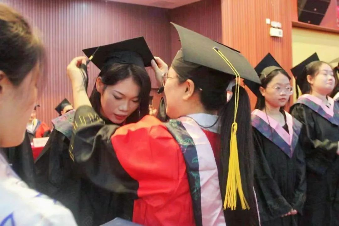 全体起立,奏唱国歌后,仪式正式开始。庄严肃穆的情绪在学生心中还未曾散去,场内灯光骤然暗淡,屏幕上那一抹鲜红转变成同学们一帧帧的青春记忆。四年时间转瞬即逝,我们在蝉鸣中相遇,又在下一个不知名的夏天分离,视频是回忆的载体,承载了一代人青春的美好记忆,毕业照虽然定格不了时间,却能封存下逝去的时光。视频里,他们的四年随着一声声祝福,一声声珍重终是走向了尽头,但他们新的人生才刚刚启程。纵有千古,横有八荒,前途似海,来日方长!