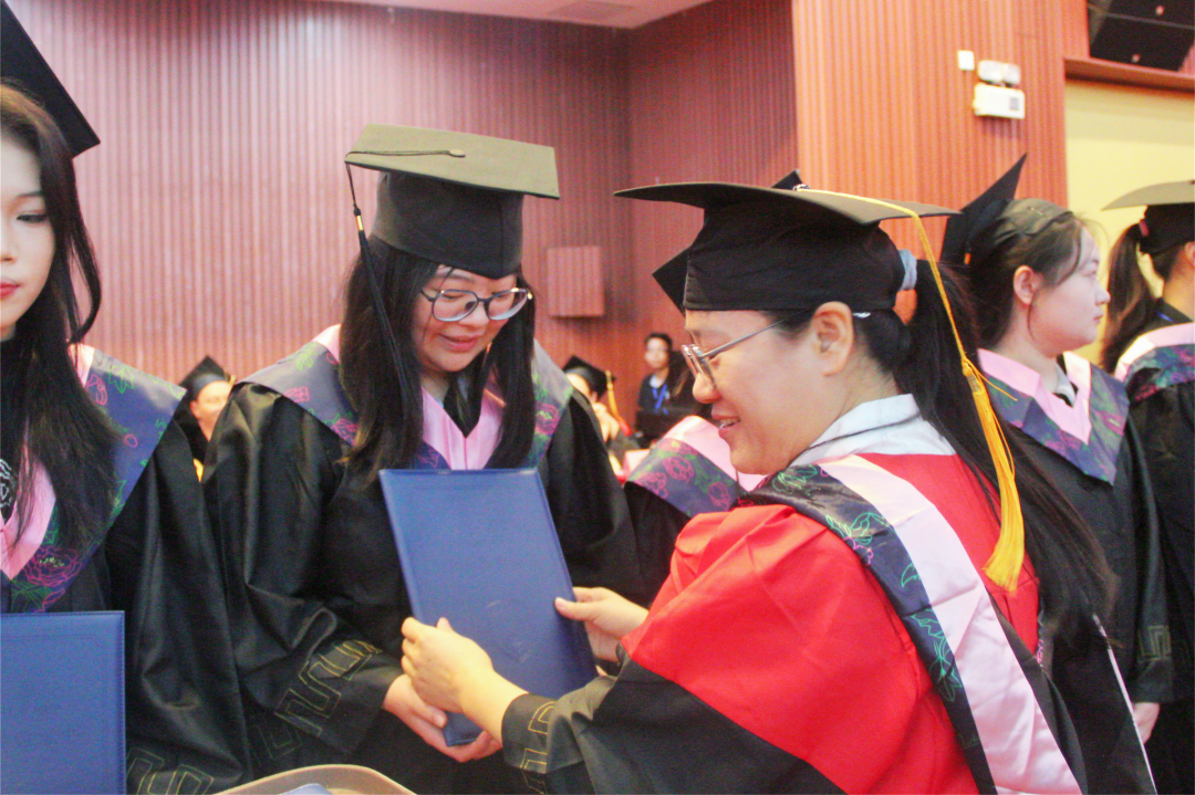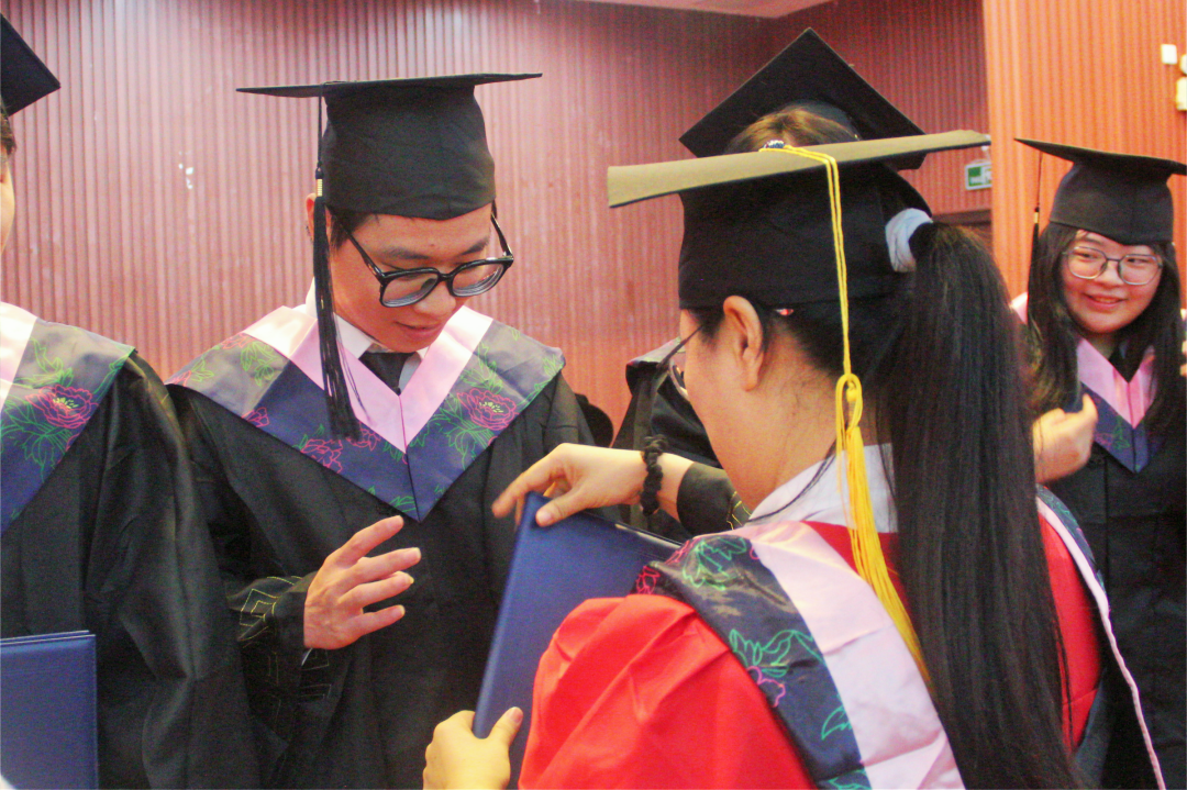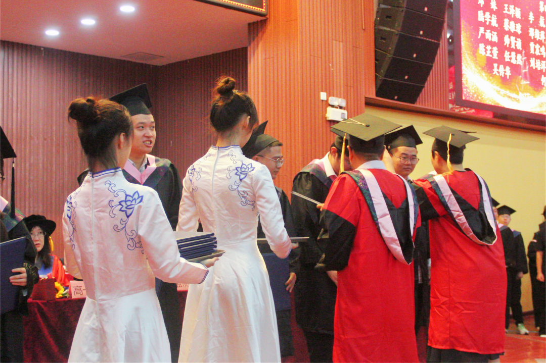 副院长刘雅斌再次表示对老师及毕业生的热烈祝贺,并宣布法学学士学位人员名单。宣读完毕后,2024届必赢76net线路官网毕业生学士学位授予仪式正式开始,毕业生依次与台下老师握手致谢并上台接受学位授予。回首四年前,承载着家人的深深关爱与殷切嘱托,怀揣着绚丽多彩的梦想在必赢76net线路官网相逢相聚。四年里,既体验了青春成长过程中的烦恼与阵痛,又满怀着对踏入社会后的美好憧憬与畅想,更锤炼出了坚韧不拔奋勇向前的意志品质。以昂扬之英姿,意气风发地迈向社会;以豪迈之气概,勇往直前地去迎接属于自己的崭新人生。