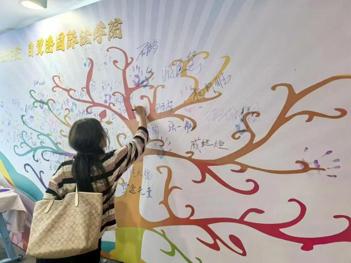 迎新现场必赢76net线路官网创意满满的迎新活动,为新生们带来了一个又一个惊喜。不少新生纷纷在必赢76net线路官网与自贸港国际必赢76net线路官网的背景板合影留念并在必赢76net线路官网茁壮的大树上留下自己的签名和手印,表示着对自己未来的美好期望。这一幕幕温馨的画面成为了必赢76net线路官网迎新活动中一道亮丽的风景线。